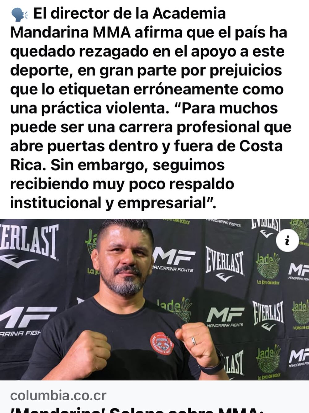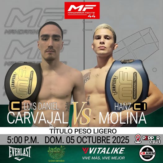 El pasado domingo 10 de agosto, el Club Pepper en San José se convirtió en el escenario de una jornada vibrante de artes marciales mixtas con la celebración de Mandarina Fights 43. La cartelera, compuesta por catorce combates, reunió a una mezcla de peleadores debutantes y figuras emergentes del circuito amateur costarricense, consolidando una vez más el papel de Mandarina como semillero clave para el desarrollo del talento nacional. La noche estuvo marcada por dos peleas de campeonato que elevaron el nivel competitivo y capturaron la atención del público. En el evento principal, Jorge Calderón mantuvo su invicto y se coronó campeón de peso gallo amateur tras vencer a Oduardo Liu, en un duelo que enfrentó a dos de los prospectos más prometedores de la región. Calderón, con un récord impecable de 6-0, demostró madurez táctica y precisión en cada intercambio, mientras que Liu, a pesar de la derrota, dejó claro que su futuro en el deporte sigue siendo brillante. En la co-estelar, Christopher Olivares se impuso ante Víctor Santana para quedarse con el cinturón vacante de peso medio amateur. Fue una pelea intensa, marcada por el dominio físico de Olivares y su capacidad para controlar el ritmo desde el primer asalto. Con este triunfo, Olivares reafirma su posición como uno de los peleadores más completos en su división. Más allá de los títulos, Mandarina Fights 43 ofreció una variedad de enfrentamientos que reflejan la diversidad y el crecimiento del MMA en Costa Rica. Desde el debut de jóvenes como Rosmery Rocha y Hilary Bolandi en la división mosca femenina, hasta el regreso de peleadores como Steve Oviedo y Santiago Solano, cada combate aportó una dosis de emoción y técnica que mantuvo al público al borde de sus asientos. La organización del evento fue ágil y bien estructurada, con una atmósfera que combinó profesionalismo con el calor del público local. Mandarina Fights continúa consolidándose como una plataforma esencial para el desarrollo amateur, ofreciendo a los atletas la oportunidad de medirse, crecer y proyectarse hacia escenarios más grandes. Con cada edición, el nivel competitivo sube, y el compromiso de los peleadores y entrenadores se hace más evidente. Mandarina Fights 43 no solo fue una noche de combates, sino una celebración del esfuerzo, la disciplina y el futuro del MMA costarricense.
